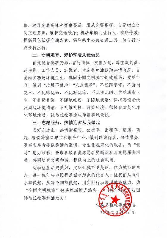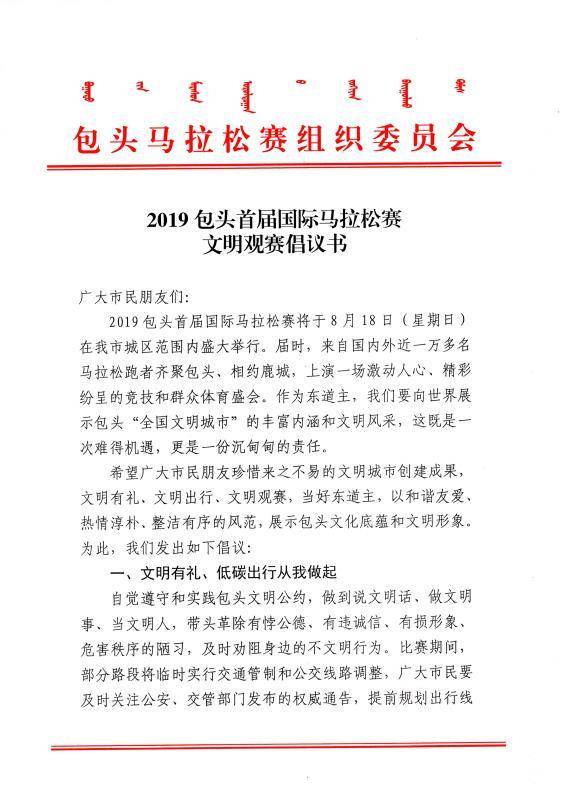 2019包头首届国际马拉松赛文明观赛倡议书