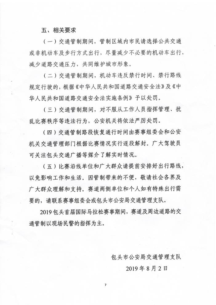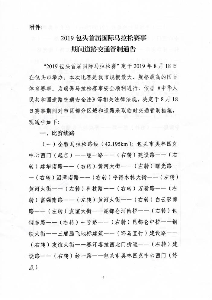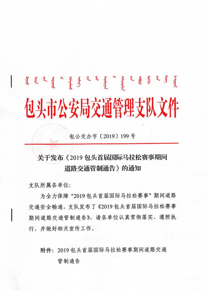 2019包头首届国际马拉松赛事期间道路交通管制通告