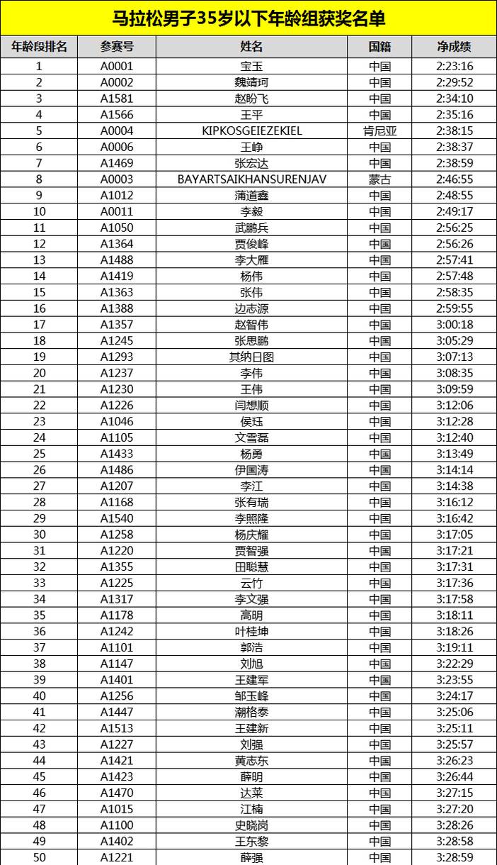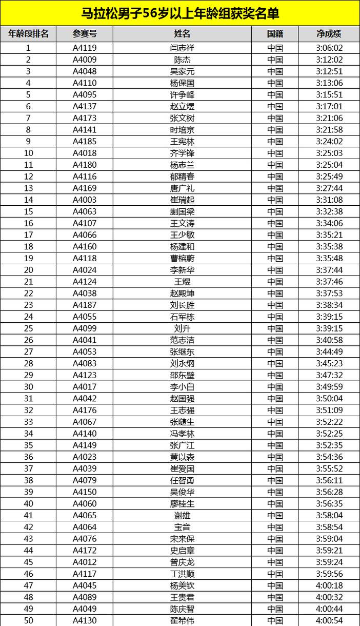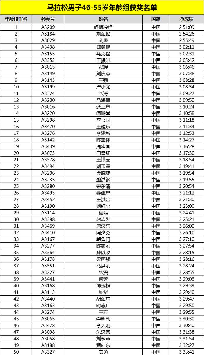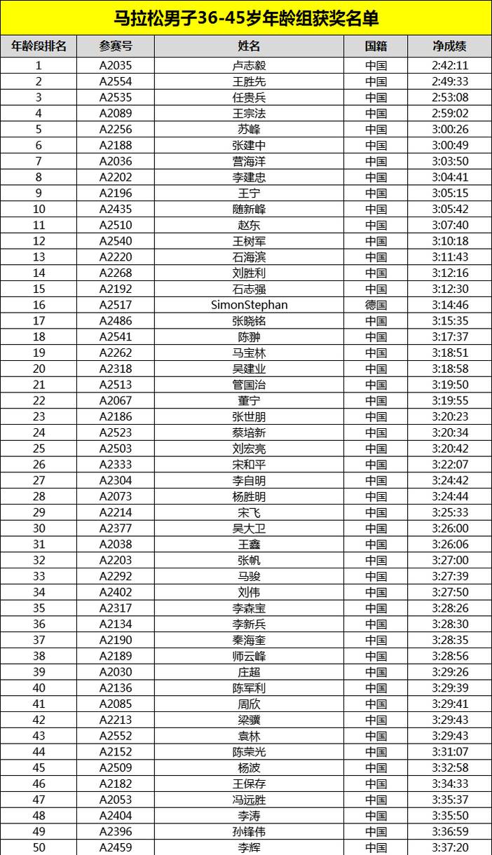 2019马拉松男子年龄组获奖成绩公示 [复制链接]