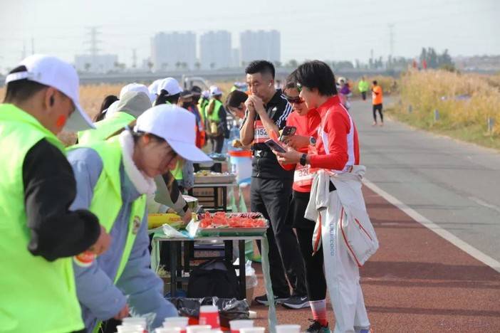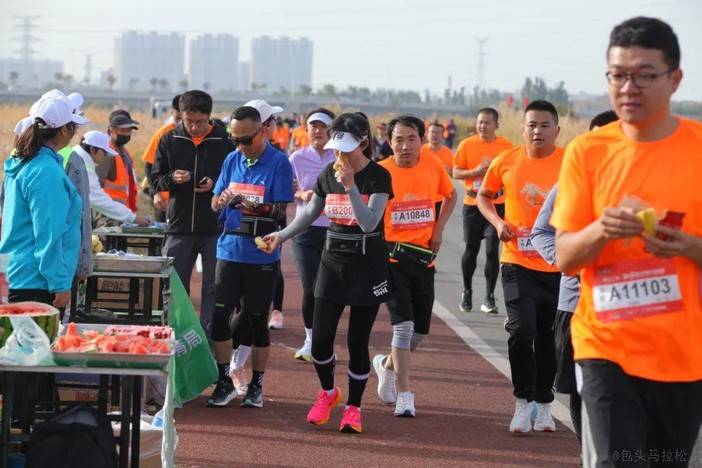 为能给参赛选手们及时提供能量补充,在沿途赛道设置了7个补给站,并有21名官方配速员带领跑者们奔跑在金秋十月的包头