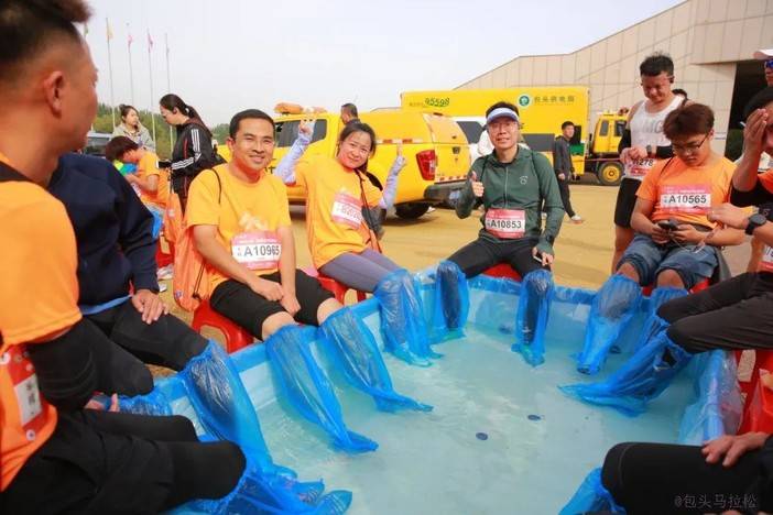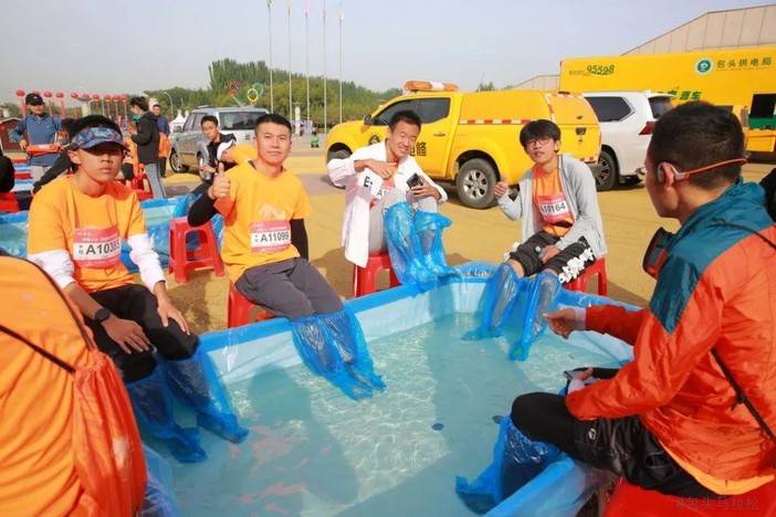 完赛后设置了冰池泡脚、按摩拉伸区域,帮助每一位跑者快速恢复。