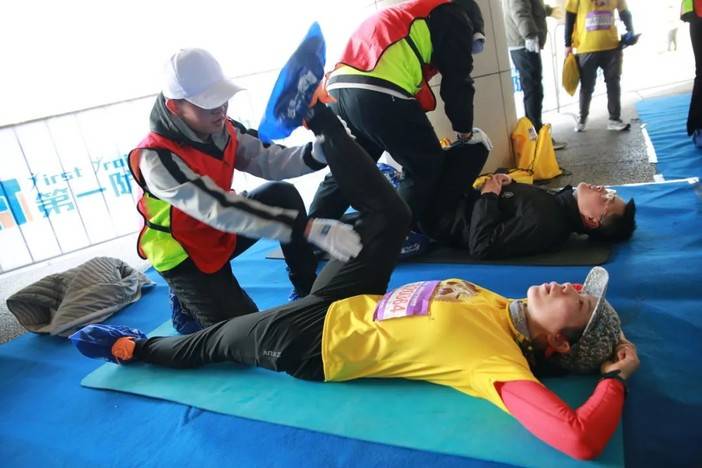 完赛后设置了赛后按摩拉伸区域,帮助每一位跑者快速恢复。